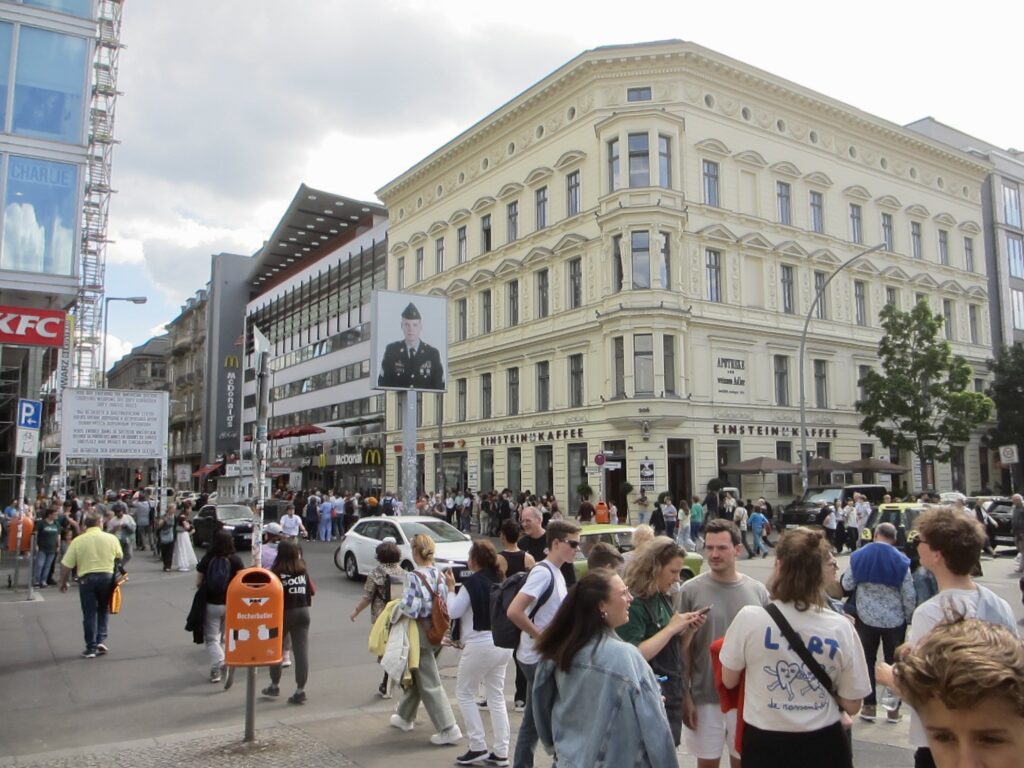 Nous voulons par la suite aller voir ou se trouvait « Checkpoint Charlie », c’est l’un des postes frontières de Berlin qui, lors de la guerre froide, permettait de franchir le mur qui divisait la capitale entre le secteur Ouest et le secteur Est.