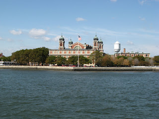 Ici sur l’ile il y a des gens de toutes nationalités, et tous s’émerveilles devant cette grande dame. La visite en vaut le déplacement. Nous reprenons notre bateau pour la visite suivante, Ellis Island. C’est une ile au coté de la statue de la liberté. Lorsque les immigrants arrivaient aux Etats-Unis, ils débarquaient sur l’iles Ellis, ou ils avaient des étapes à passer pour être admis. Entre 1892 et 1954, 12 millions d’immigrants sont passés par l’ile Ellis, et seulement 2% d’entre eux, ont été refusés d’entrés. La visite est intéressante, ici aussi sa en vau le détour. C’est à 17 :00 hre. que nous reprenons notre bateau pour retourner vers Jersey city. En passant devant New-York, nous jetons un dernier regard sur Manhattan.