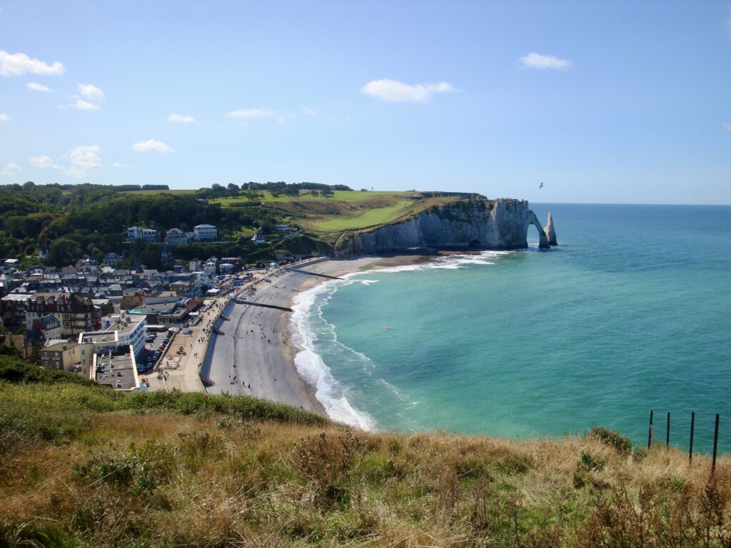 Étretat est une petite ville de 1,200 habitants coincé entre deux falaises de calcaires blanche.