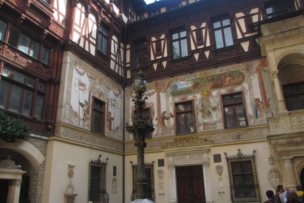 Avant de partir il ne faut pas oublier de jeter un petit coup d’œil au château de Pelisor qui n’est qu’à 100 m. du château de Pelés, il s’agit d’un vaste chalet construit entre 1899 et 1902 par le roi Charles ler de Roumanie.