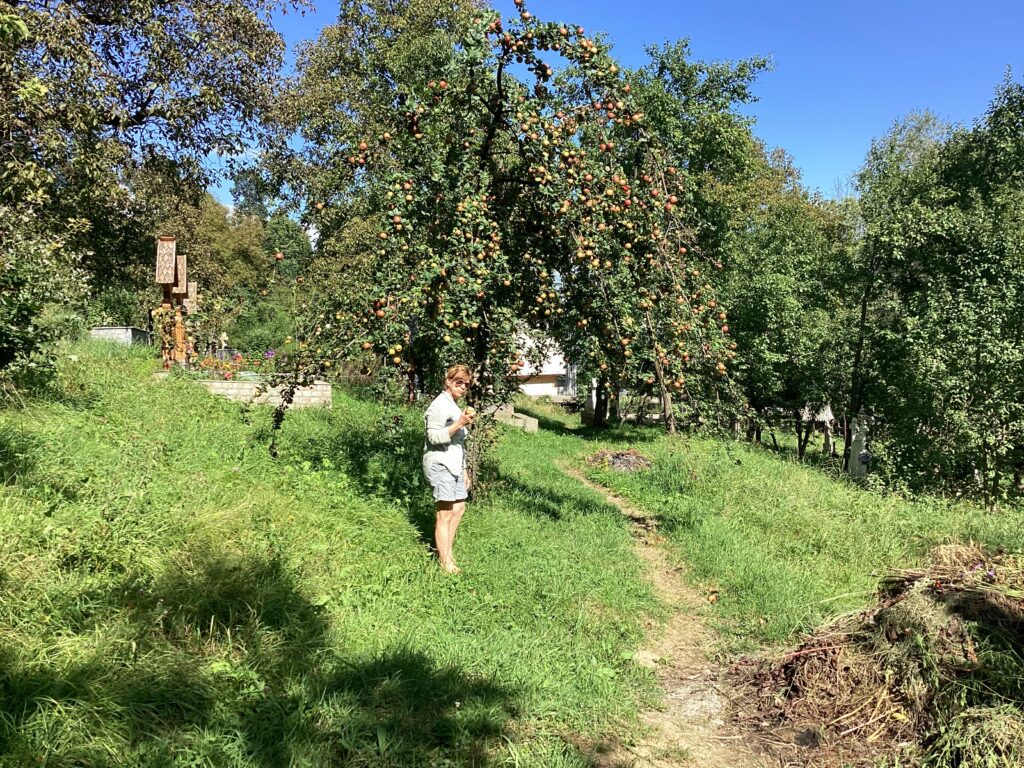 Le cimetiere entourant l’église a de nombreuses croix celtiques….et de délicieuses pommes.
