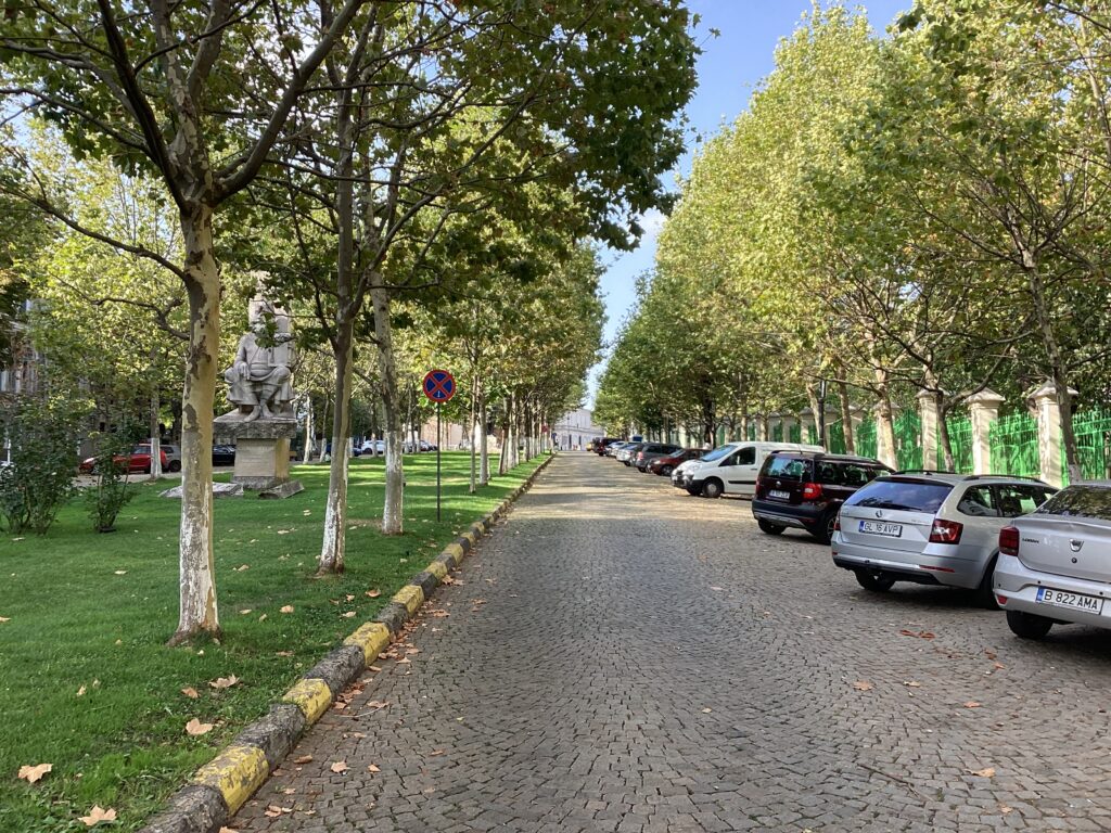 Assez jaser, nous quittons l’appartement il est 09:45hre. direction un quartier qui nous ai inconnu au sud du « bulevardul Unirii ». En traversant ce grand boulevard on se dirige vers une rue qui est balisé par des arbres. La rue monte et nous sommes à la fraîche sous les arbres.