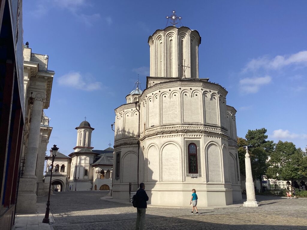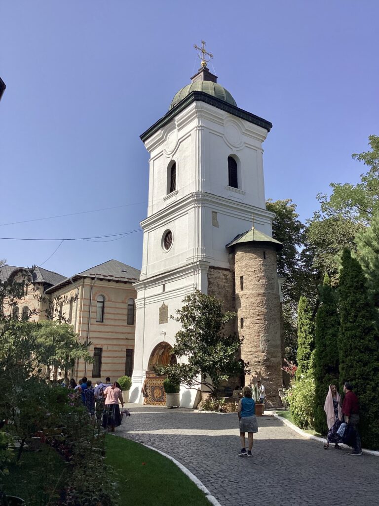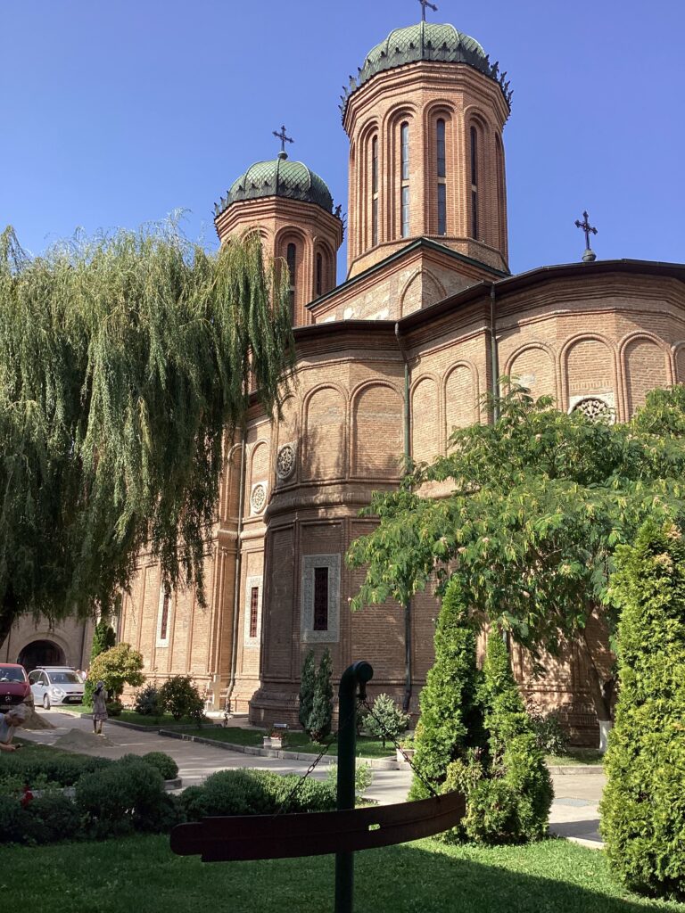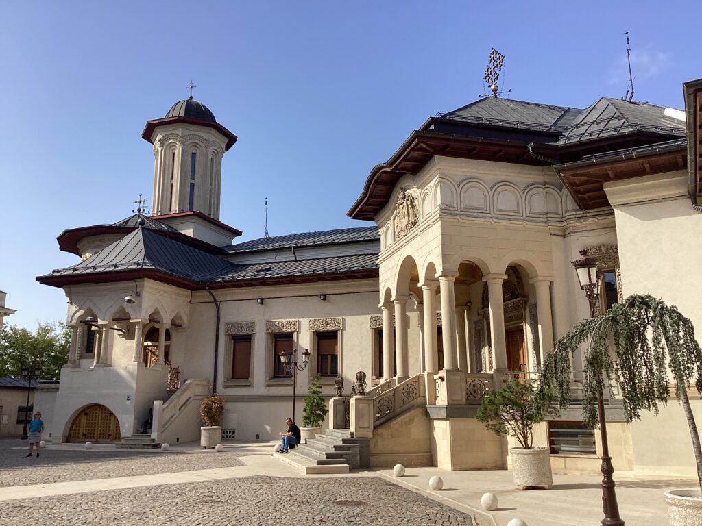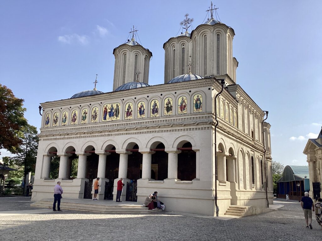 C’est en arrivant au bout de la rue que nous découvrons avec émerveillement une magnifique église sur un grand site entouré de très beaux bâtiments. Nous sommes à l’église du Patriarche, elle a été construite de 1654 à 1658, sur les fonds du prince de Valachie, Constantin ler Servan Basarab.