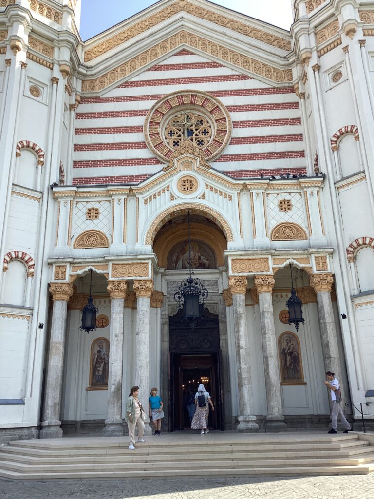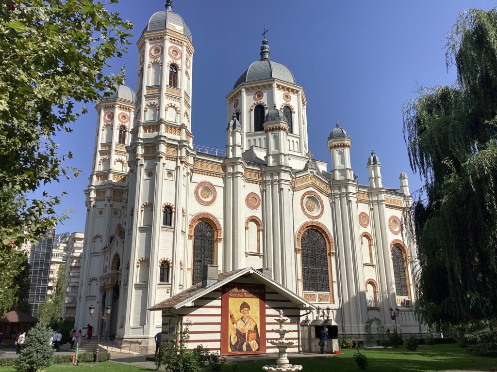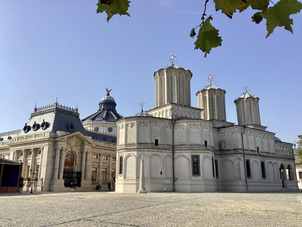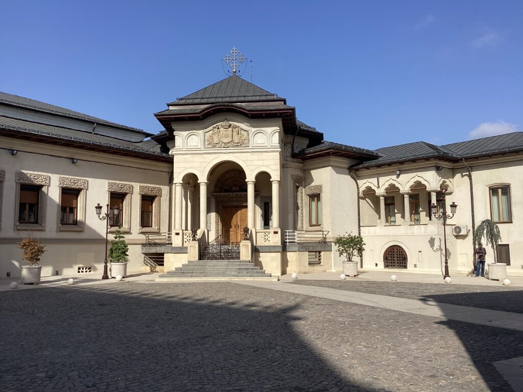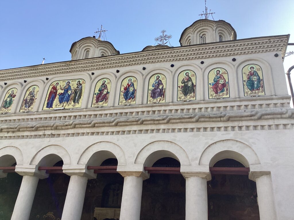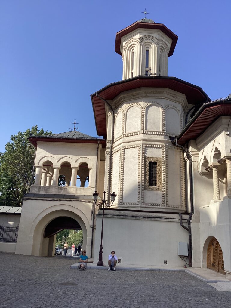 C’est en arrivant au bout de la rue que nous découvrons avec émerveillement une magnifique église sur un grand site entouré de très beaux bâtiments. Nous sommes à l’église du Patriarche, elle a été construite de 1654 à 1658, sur les fonds du prince de Valachie, Constantin ler Servan Basarab.