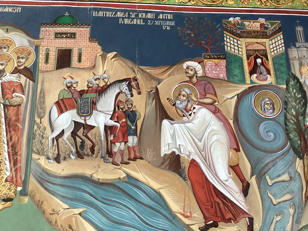 On ne fait pas bien loin que l’on arrive à l’entrée d’un monastère. C’est le Monastère Antim, il est petit mais il mérite qu’on s’y attarde.