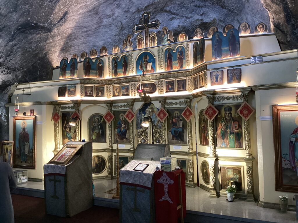 Mais le plus beau c’est l’église….hé oui!….la première église orthodoxe d’Europe taillée en sel, ouverte en 1992.