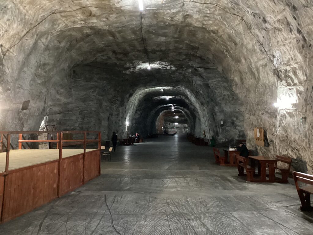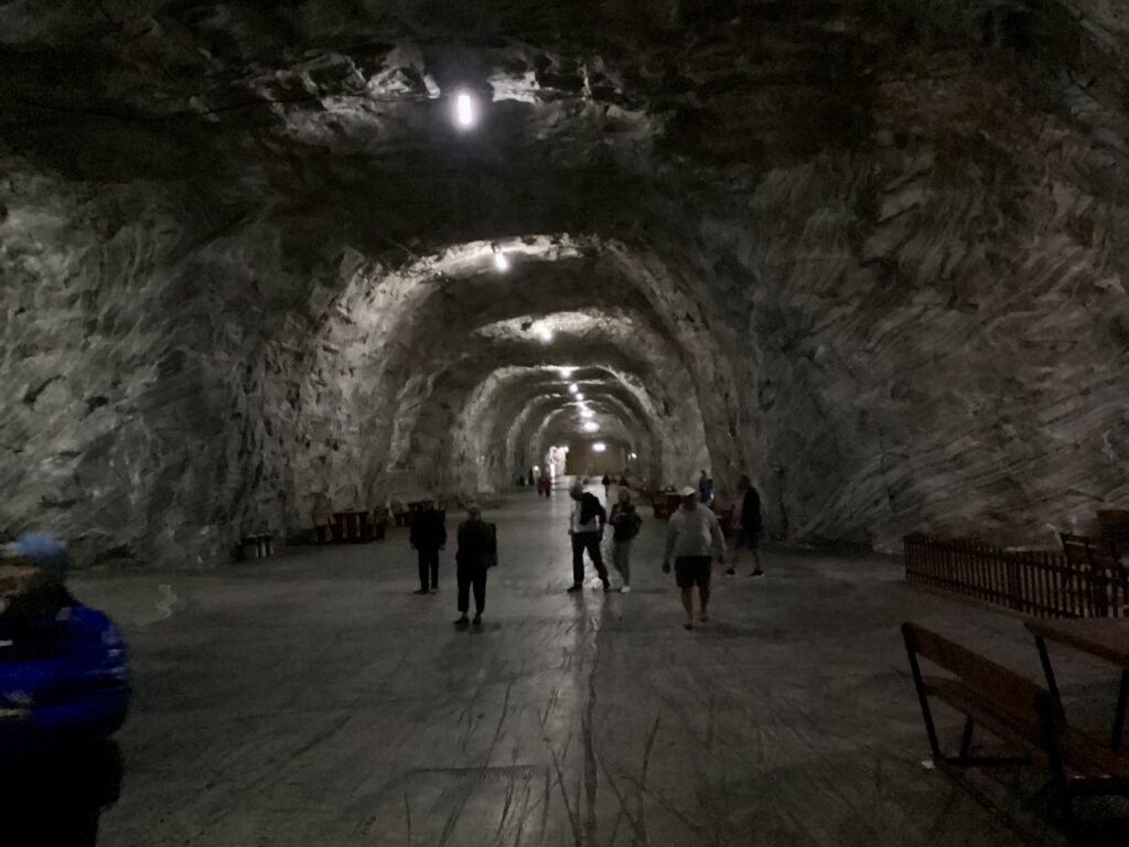 Arrivé à Târga Ocna on voit une enseigne indiquant la direction pour la Salina (la mine de sel). Ont avait entendu parler de la mine, mais sans porter grande attention. Mais vue qu’on est là, ont vas aller voir à quoi ça ressemble.
