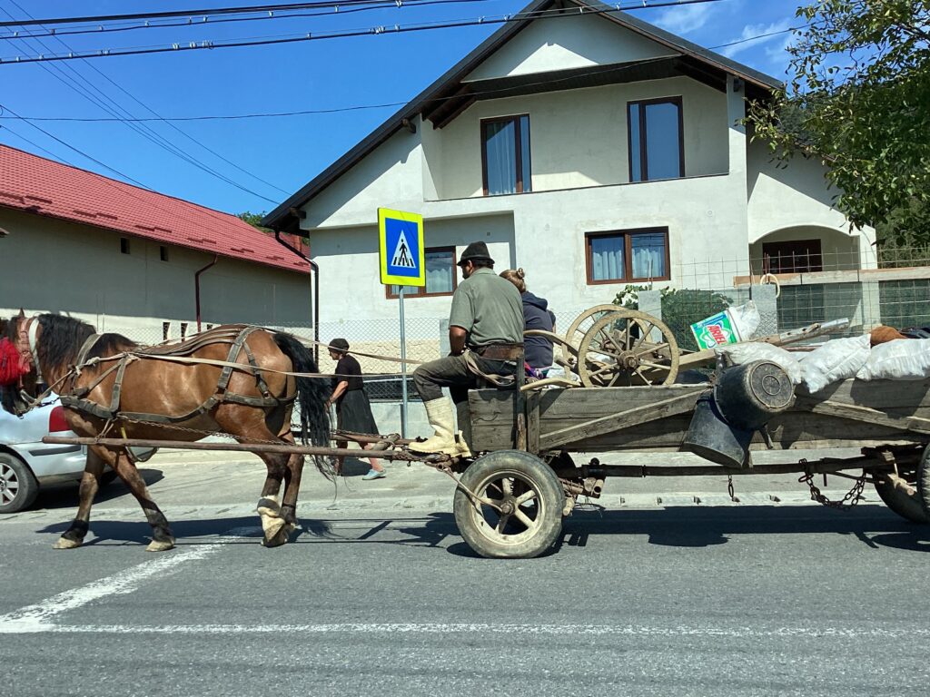 Au début du voyage, nous avons été surpris par la verdures dans les villes, ils conservent les arbres, c’est parfait, mais il y a un mais, il y en a tellement que parfois ça déforme les rues et les bâtisses. En sortant des villes de la Transylvanie et de la Valachie on se retrouve en montagne dans les Carpates recouvertes de grandes forêts denses comparable à notre Abittibi.