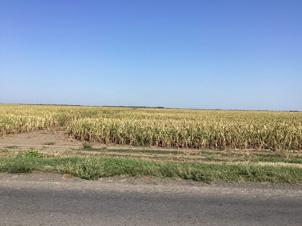 En se dirigeant vers l’Est du pays pour rejoindre le Delta du Danube, nous avons été impressionné par l’immensité des terres agricoles que l’on traversait. Ce fut le même paysages agricole que l’on a retrouvé quand nous sommes retournés vers Bucarest en venant de l’Est, la Roumanie est un des importants grenier de blé, maïs et tournesol pour l’union Européenne.
