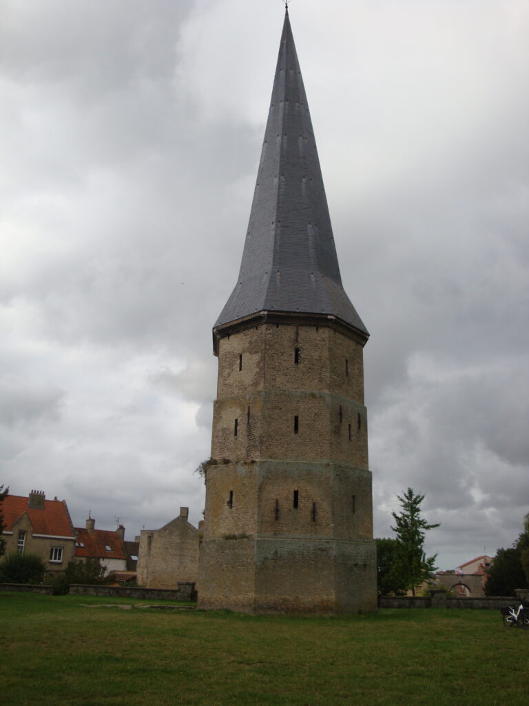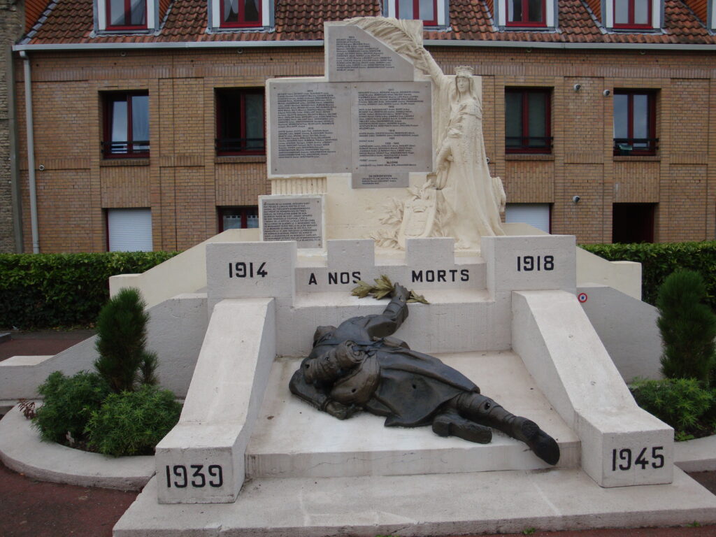 Inauguré le 10 juin 1923, Il représente un soldat agonisant devant les murailles de la ville, symbolisée par une femme statufiée dans du calcaire. Endommagé en 1940, il est restauré après 1945. Le Poilu (nom donné aux soldats français de la première guerre) qui est en bronze, si vous agrandissez la photos vous verrez qu’il est percé de trous provenant des balles tirées par l’ennemi au cours de la dernière guerre mondiale.