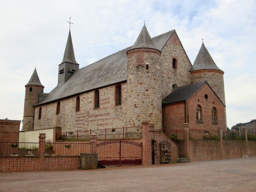 Les routes que nous empruntons nous font passer en campagne et traverser plusieurs villages avec des drôles de nom, on a traversé « Mon Idée » et « La Bouteille » c’est d’ailleurs dans ce village que j’ai pris une photo de leur église fortifiée , il s’agit d’une église construite pour abriter les gens en cas d’invasion.