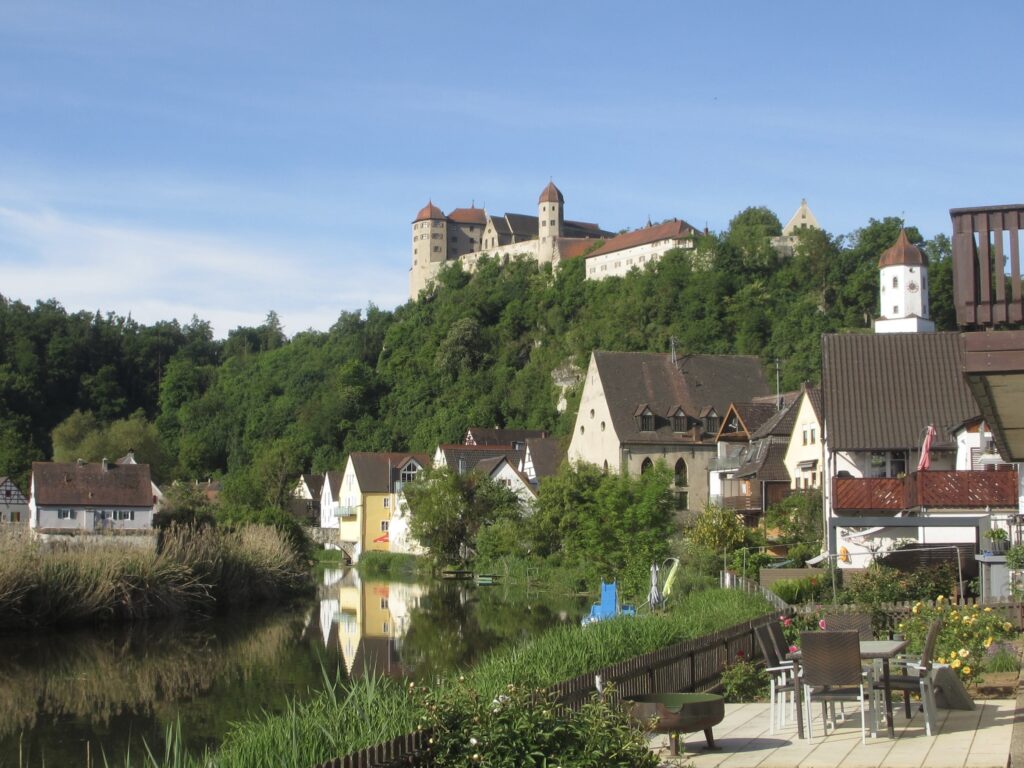 Dominant la ville est le puissant Harburg, un des châteaux les mieux préservés d’Allemagne. Il est mentionné pour la première fois en 1150.