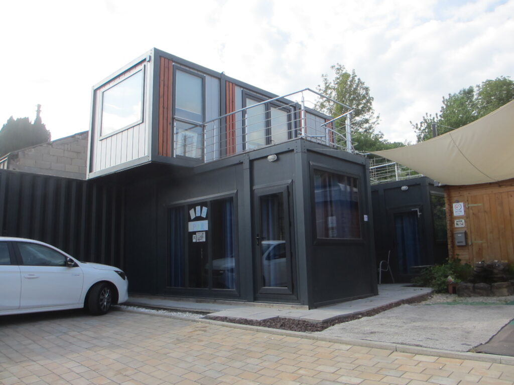 Nouvelle expérience pour nous, nous avons réservé une chambre aménagée dans un conteneur, du même genre de conteneur que l’on retrouve dans les ports. On vous en reparle demain.