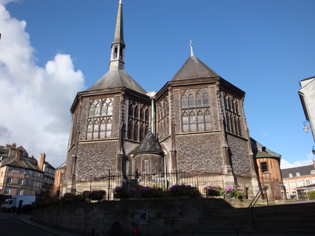Datant de la deuxième moitié du XVème siècle, l’église Sainte-Catherine remplace une ancienne église de pierre détruite pendant la Guerre de Cent ans. Elle fut édifiée par les habitants de la ville après le départ des Anglais. Disposant alors de peu de moyens, ils utilisent, comme matière première, le bois en provenance de la forêt de Touques et leurs connaissances en construction navale.