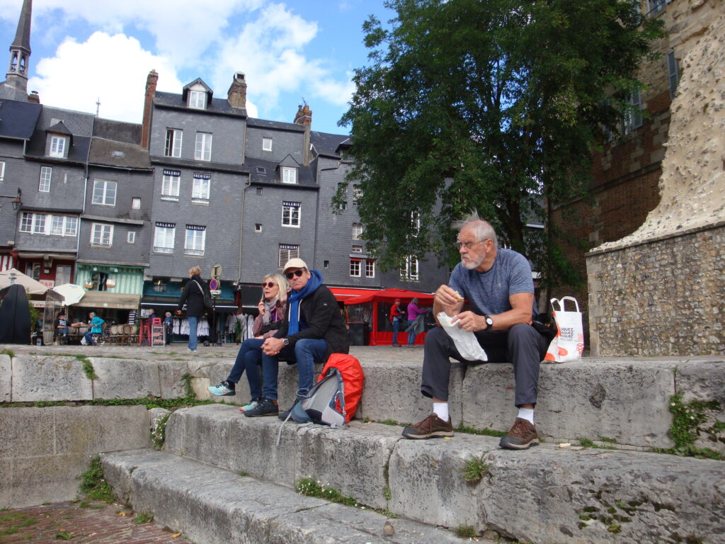 Nous retournons au port et on s’installe sur les marches aux pieds de la Lieutenance pour dévorer notre sandwich, tout en admirant « le vieux bassin ».