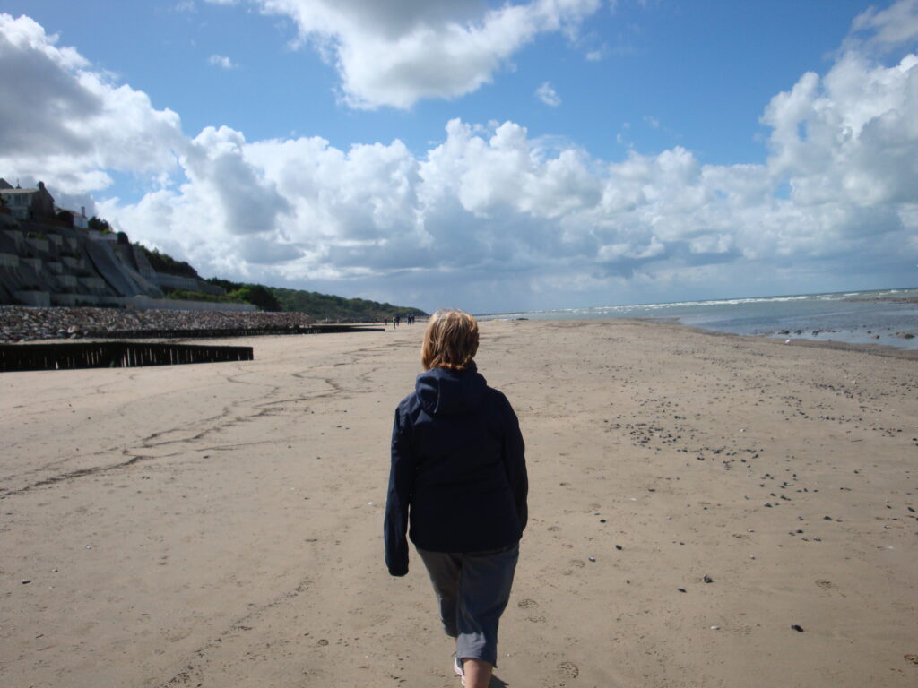 Nous partons pour le village de Villerville, une marche sur le plage nous feras le plus grand bien. C’est pas la plus belle des plages, mais il n’y a personne et on s’amuse à regarder les goélands s’élever dans les airs, tenant une moule dans leur bec et la laisser tomber sur les roches pour les ouvrir.