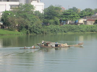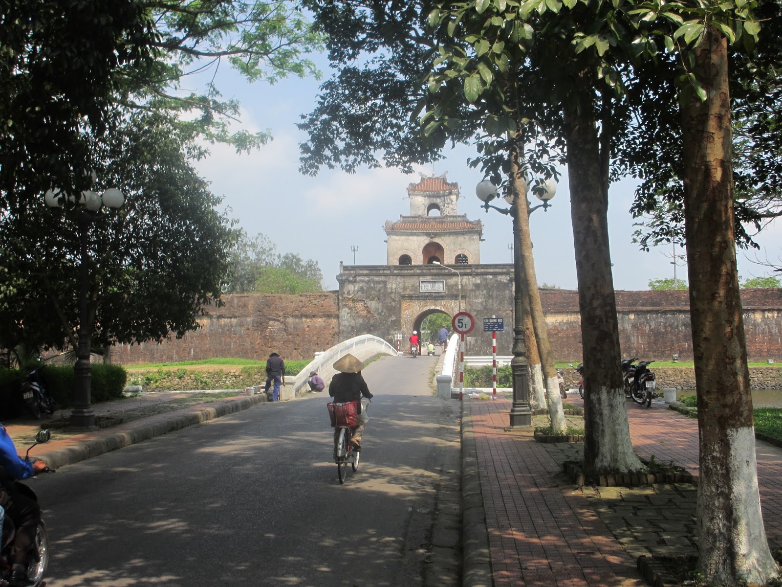 Nous quittons tôt pour une marche, direction la cité impérial, nous voulons profiter de la fraîcheur du matin. Pour se faire nous devons traverser la rivière des parfums en empruntant le pont Trang Tien, construit par les français, réserve aux cyclistes et aux piétons.