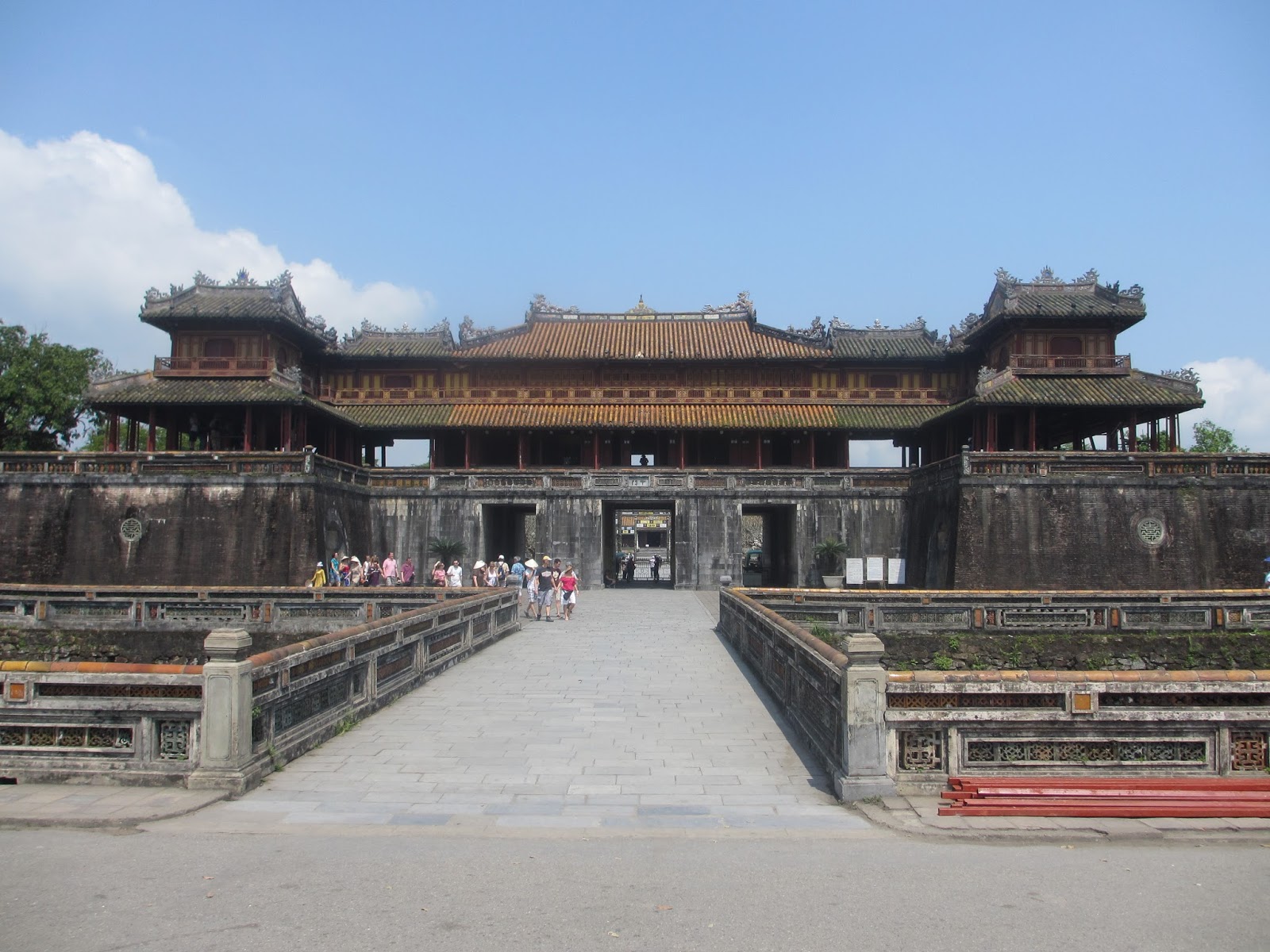 Nous devons traverser ces murs pour avoir accès à la cité Impérial, et en admirer sa beauté. Cette cité fut construite pendant la dynastie des Nguyen, sur un terrain de 150 hectares. L’empereur ne quittais jamais la cité, il y retrouvait de tout. Plusieurs bâtiments ont été détruit par les séismes et les guerres. Parmi les bâtiments qui ont résisté, on y retrouve entre autre, le palais impérial ou l’empereur recevais ces sujets.