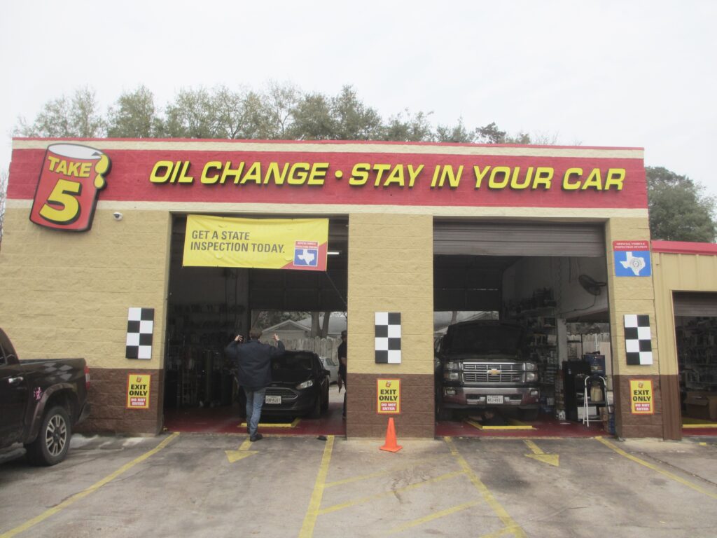 A quelque reprise dans notre voyage j’avais vue un commerce se spécialisant dans les changement d’huile. Le commerce s’appel « Take 5 », leur annonce disait: Rester dans votre auto lors du changement d’huile.