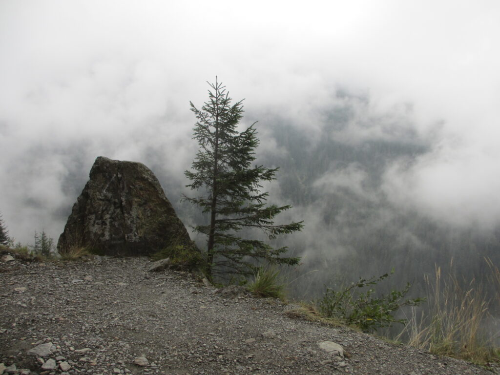 Ont dit que le panorama est époustouflant, il faut le croire, mais malheureusement comme je craignais les nuages ce « mêle de la partie »…….on voit rien.