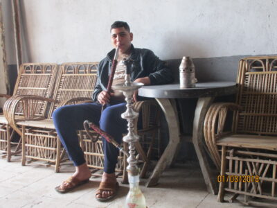 Tout à coté, un jeune homme fumant la fameuse pipe à eau.