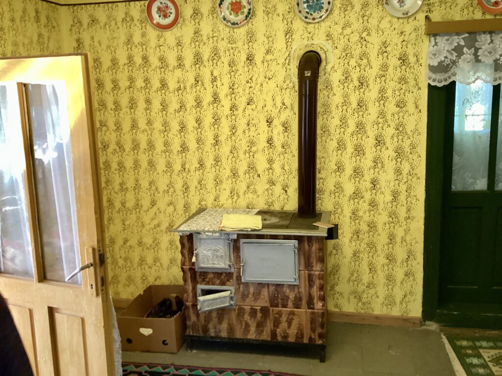Il n’a pas d’eau courante, il recueille sont eau dans le puit devant la maison et comme on peut voir sur les photos, il chauffe au bois. Il dit que l’hiver il tombe jusqu’à un mètre de neige.