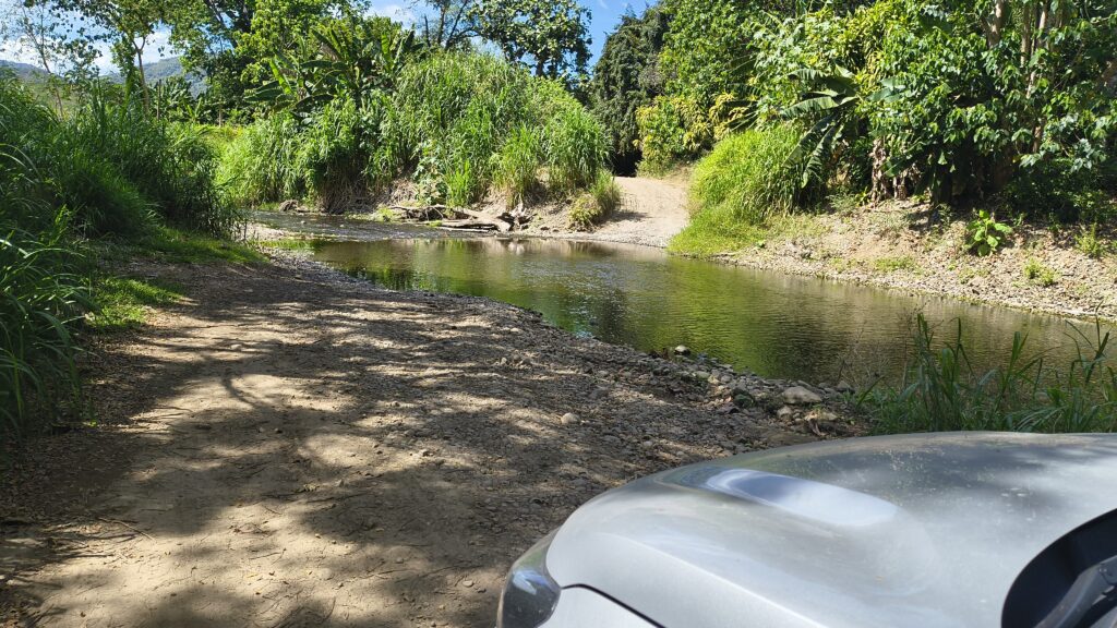 Il nous faut faire demi-tour c’est un VUS qu’on a louer, pas un 4×4 et notre assurance ne couvre pas les traversées de cours d’eau…..ont prendra pas de chance.