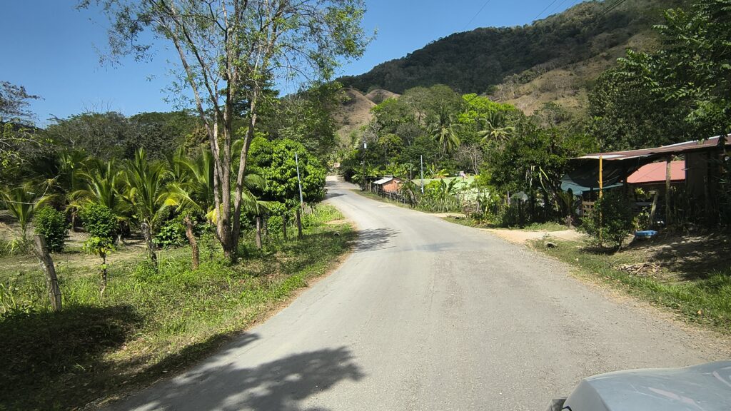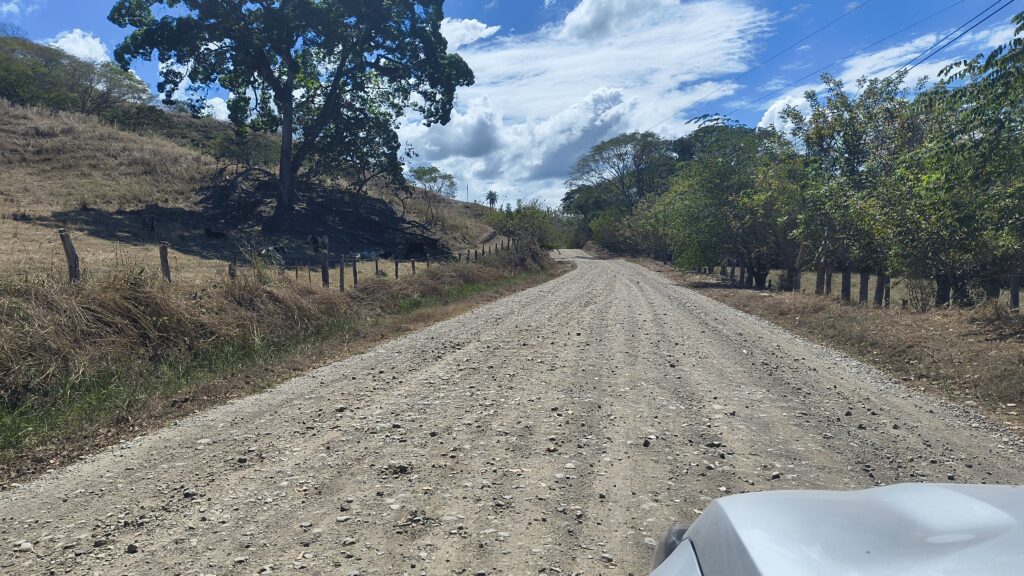Reprenant une autre route de terre, on a une belle vue sur les montagnes Nicoyennes.