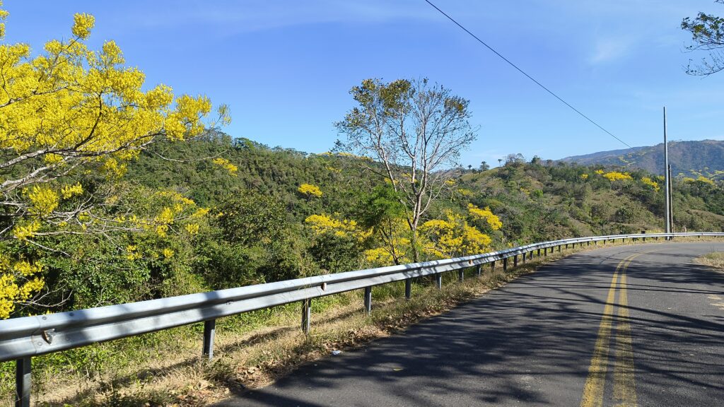 Arrivé à la petite ville de Hojancha (qui est également un canton de Guanacaste reconnue pour la longévité des habitants la route est belle) nous sommes dans le milieu de la péninsule de Nicoya, il nous reste encore 70km à parcourir.