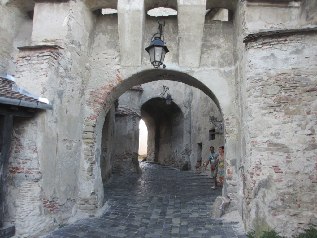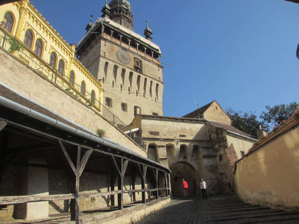 En réalité lorsqu’il est question de la vieille ville, il est plutôt question de la Citadelle de Sighişoara qui était protégée par des remparts, 14 tours de guet, aujourd’hui il n’en reste que 9 et 2 portes d’accès, l’une à l’Est et l’autre à l’ouest construit au Xllle siècle.