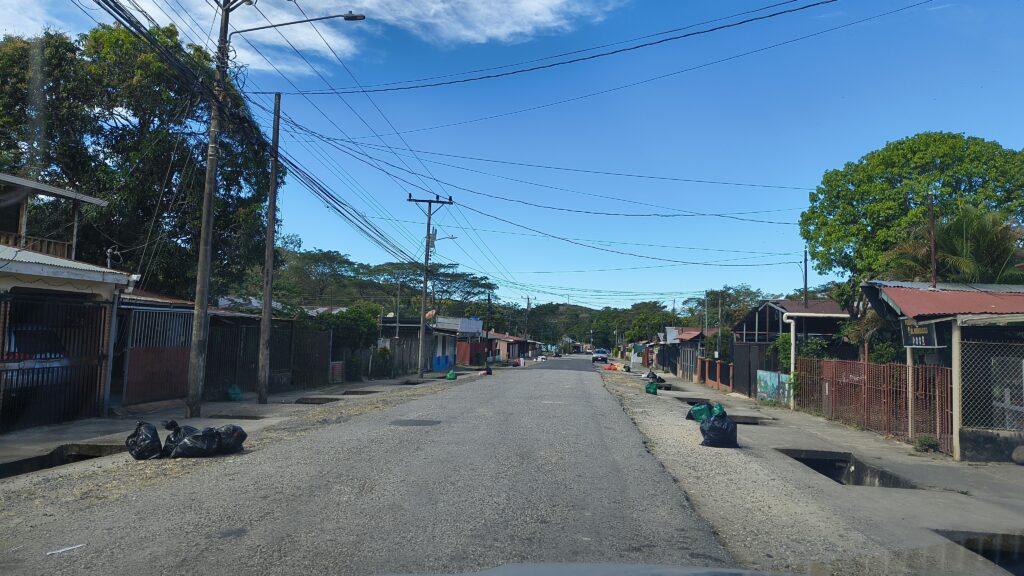 Il faut une demi heure pour traverser ”Sodome et Gomorrhe”, notre hébergement se trouve en campagne plus ou moins 2 km de Tamarindo.