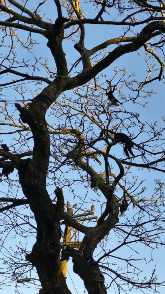 Merde, les singes sont rendus en ville, pis dire qu’on a payé pour espérer en voir en forêt alors qu’ils ont déménagés en ville.