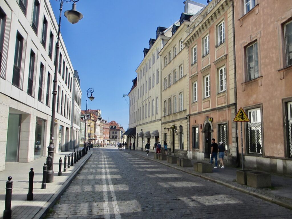 Mais nous choisissons de prendre la Voie Royal, il s’agit d’une ancienne artère principale de Varsovie qui menait au sud de la ville. De nos jours, elle fait place à une série de rues et d’avenues, bordées de nombreux bâtiments historiques. Cette rue est d’une longueur de 1.5 km, mais ça fait rien on est pas pressé.