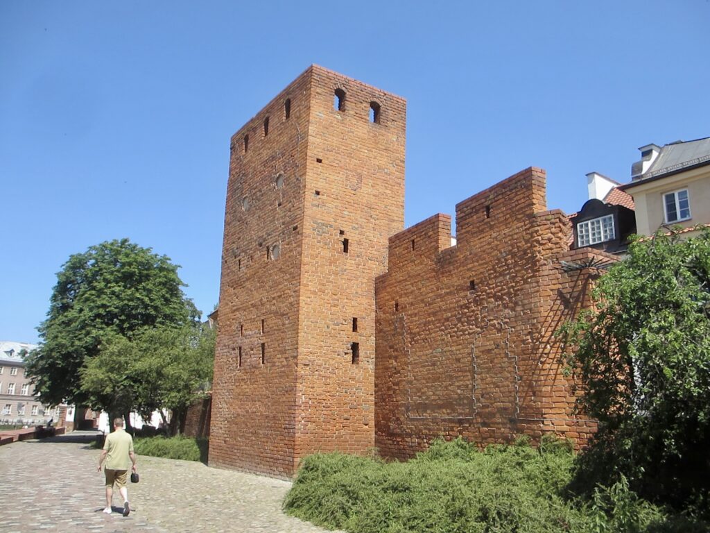 Nous suivons les remparts qui initialement cernaient la ville. Au XVe siècle, les remparts de Varsovie furent construits pour protéger la Vieille Ville des attaques ennemies.