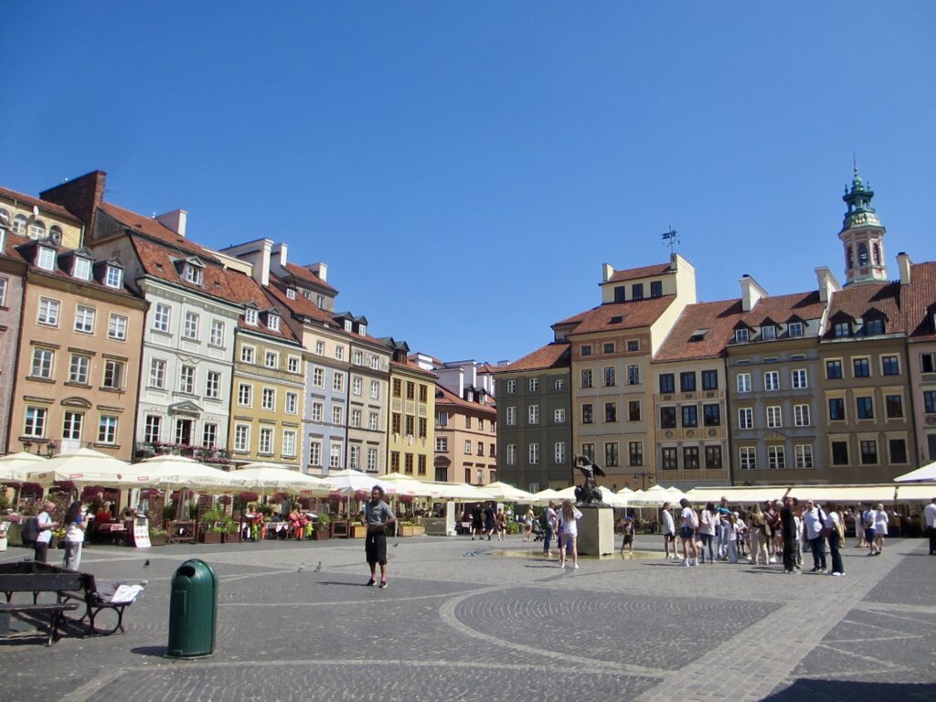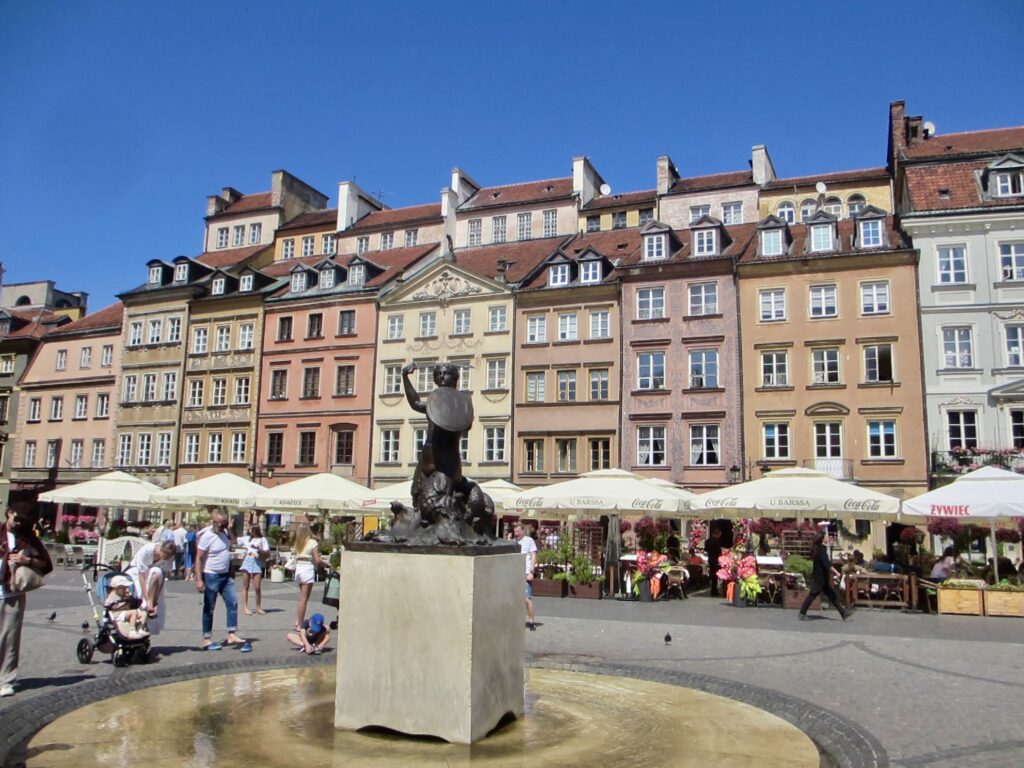 De retour sur la place Zamkowy, seigneur y a du monde, c’est vrai qu’il fait beau (26 Celsius) et nous sommes dimanche.